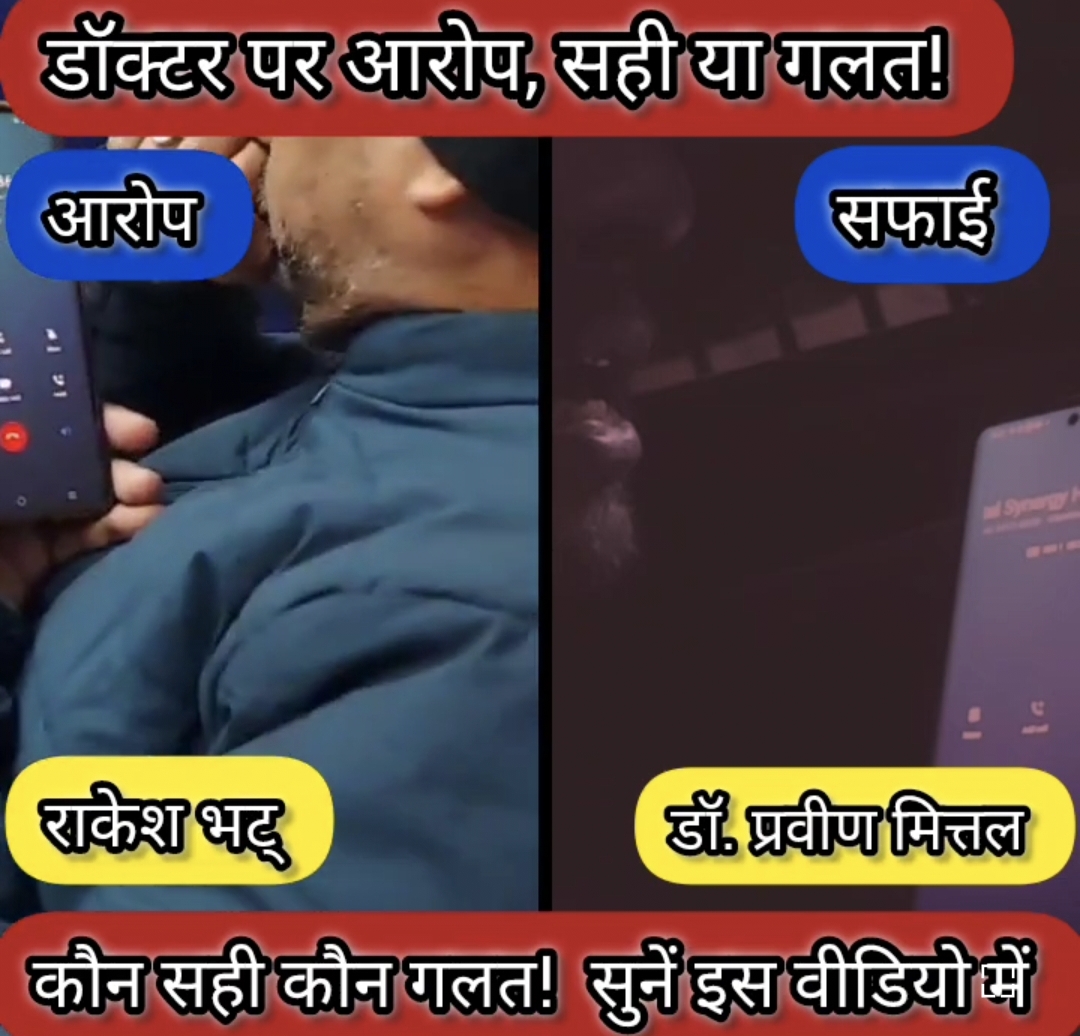 वहीं आरोपों से नाराज सिनर्जी अस्पताल के डॉक्टर प्रवीण मित्तल ने बातचीत में साफ-साफ कहा है कि हमारे अस्पताल से जारी मरीज की रिपोर्ट बिल्कुल सही है और राकेश भट्ट द्वारा वायरल की जा रही पोस्ट भ्रामक है। जिससे अस्पताल और डॉक्टर की छवि को नुकसान हुआ है । डॉक्टर ने कहा कि आरोप लगाने वाले व्यक्ति जो स्वयं को वकील बता रहे हैं, उनके द्वारा फैलाई जा रही सूचना गलत है, उस पर यकीन ना करें।